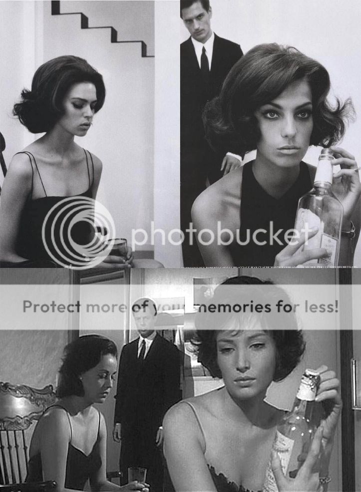 Steven Meisel y Annie Leibovitz son solo algunos de los fotógrafos de moda que destacan por crear ambientes casi cinematográficos en sus editoriales. El trabajo de Meisel junto a Vogue Italia ha sido legendario, especialmente cuando se trata de inspirarse en películas del pasado. Qué mejor que tomar a las divas Jeanne Moreau y Monica Vitti bajo los escenarios de La Notte (1961) de Michelangelo Antonioni, para reversionarlas con las modelos Elise Crombez y Daria Werbowy. El resultado: Cinema Stills, una serie de fotografías en blanco y negro que aparecieron el año 2003 como homenaje al gran cine italiano.