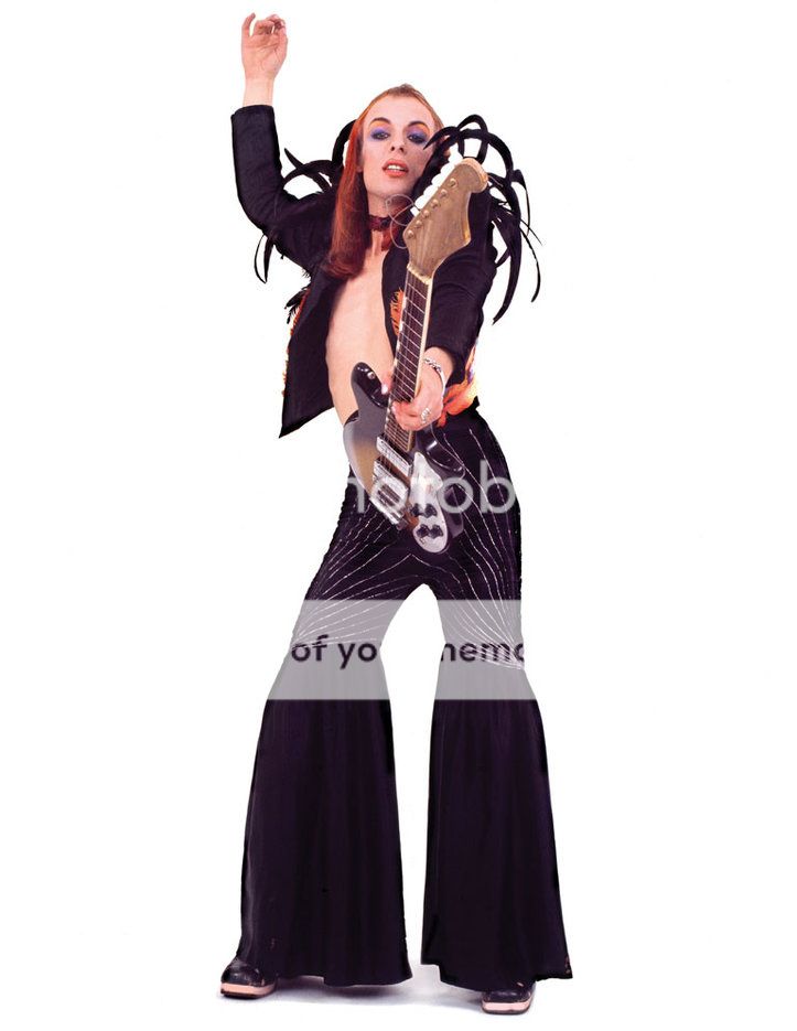 Como novia de Brian Eno, el tecladista de la banda glam británica Roxy Music, la artista Carol McNicoll tuvo la oportunidad de confeccionar una serie de trajes que el músico utilizó en los escenarios a principios de los '70. Luego de trabajar como costurera para la diseñadora Zandra Rhodes, McNicoll estudió Cerámica en el Royal College of Art pero también se dedicó a supervisar las portadas de los discos solistas de Brian Eno durante los '70. Este traje de plumas y satin se encuentra en la colección de vestuario del Victoria & Albert Museum de Inglaterra y Eno lo usó para el arte de portada de For your pleasure, segundo disco de Roxy Music lanzado en 1973.