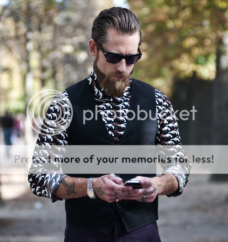 Pocos hombres son los destacados por el blog The Sartorialist gracias a su look; pero Justin O'Shea es uno de ellos. Siempre combinando motos, tatuajes y un look new traditional, el director de compras de la tienda online de lujo MyTheresa sabe combinar desde púrpuras hasta chaquetas de cuero, todo acompañado de su pareja, la editora del mismo sitio web, Veronika Heilbrunner.